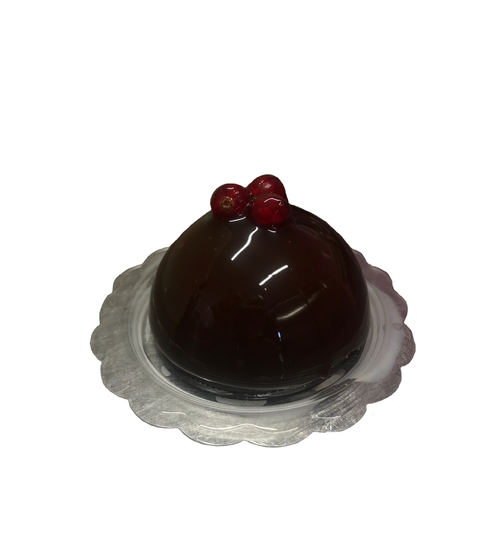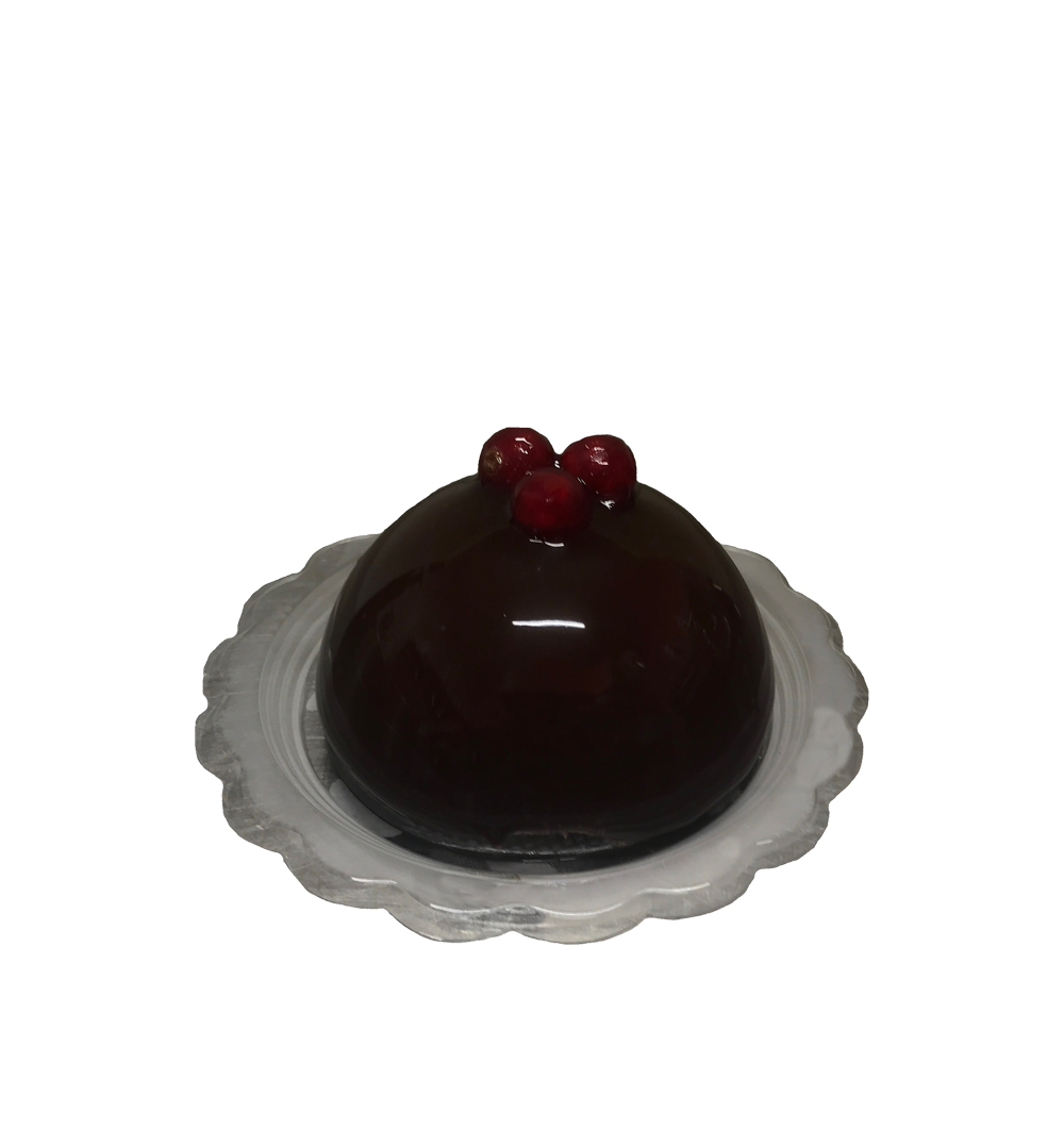 Monoporzione Vasetto Sacher con Gianduia e cuore di Albicocca glassata al Cioccolato fondente.